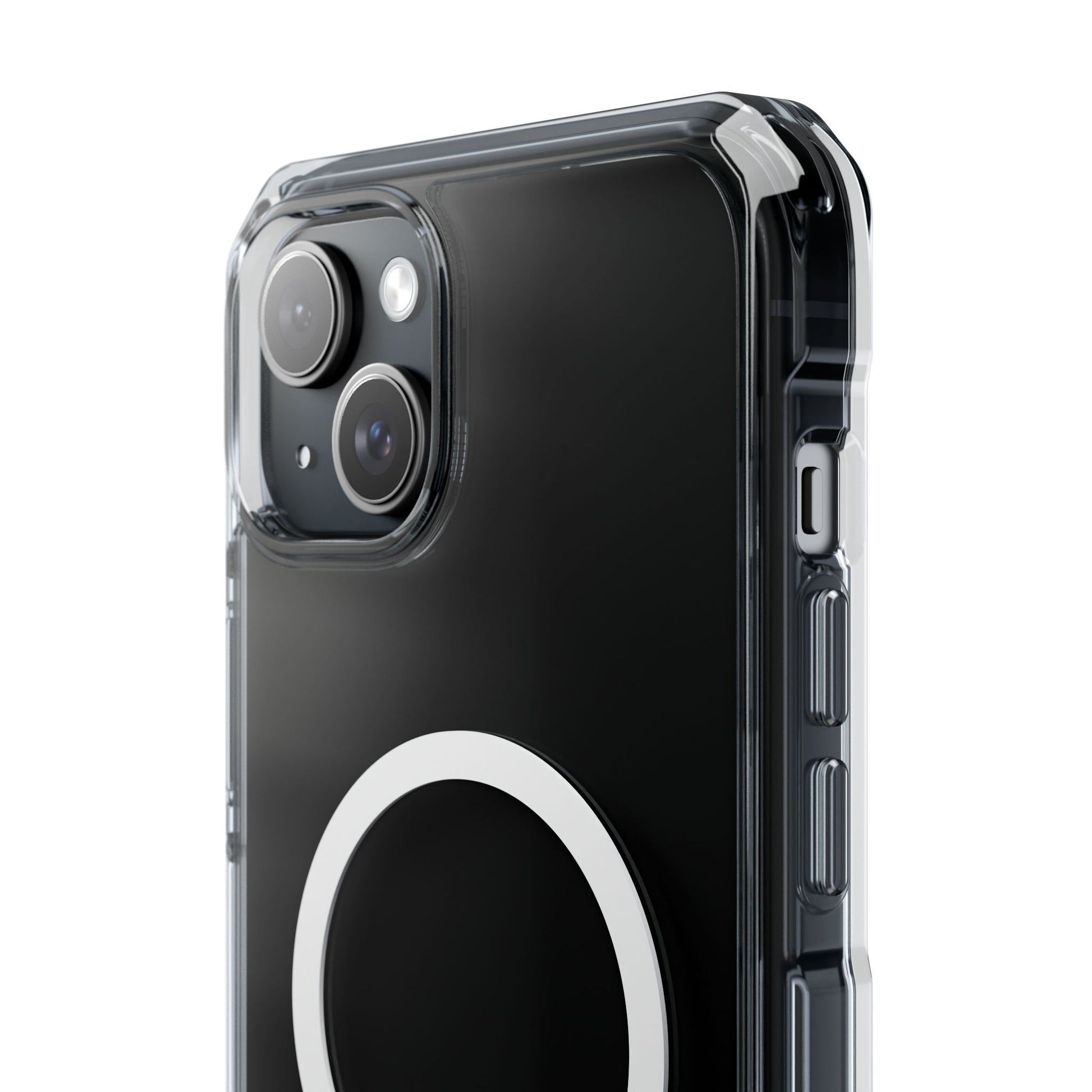 Protect your iPhone 14 or iPhone 15 with this MagSafe®-compatible impact case, crafted from durable polycarbonate and flexible TPU. This elegant and subtle case features an embedded MagSafe®-compatible module for seamless accessory compatibility, air-cushioned bumper corners for superior drop protection, and holes for straps or charms, ensuring both style and functionality.